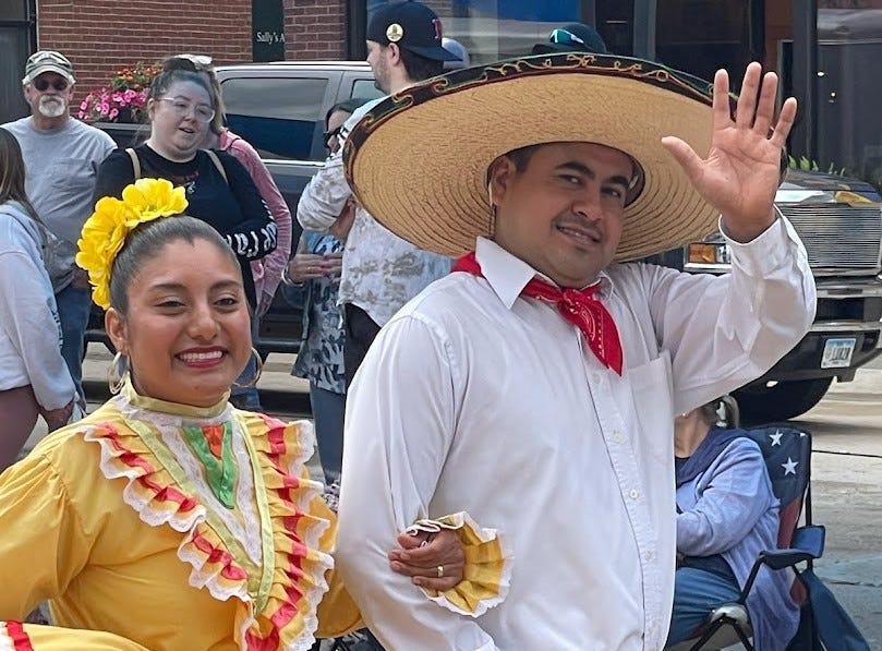 Visiting dancers in the Bell Tower Festival parade in Jefferson in 2022.
